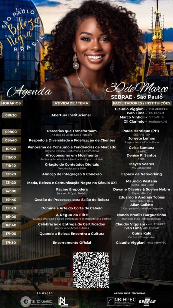 No dia 30 de março de 2026, São Paulo recebe a 10ª edição do Seminário Beleza Negra, iniciativa do Instituto ABIHPEC que tem como objetivo fortalecer o afroempreendedorismo, valorizar a estética afro-brasileira e ampliar oportunidades para profissionais e empreendedores do setor da beleza.